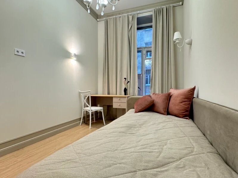 Summer Stay — просторная квартира сети Душевно в историческом центре Санкт-Петербурга, рядом с Литейным проспектом и Фонтанкой. Просторная двухкомнатная квартира подойдёт для комфортного проживания семьи или гостей в командировке. Две отдельные спальни, светлая гостиная с зоной отдыха, полноценная кухня, ванная комната. В пешей доступности набережная реки Фонтанки, Спасо-Преображенский собор, Летний сад, музеи, театры, а также множество ресторанов, баров и кофеен. В 10 минутах езды Дворцовая набережная со всеми её достопримечательностями. Рядом станции метро «Чернышевская» и «Маяковская», отличная транспортная доступность в любую часть города. Оснащение: — двуспальная кровать, двуспальный и односпальный диван-кровать — кухня с холодильником, плитой, духовкой, посудомоечной машиной, микроволновкой, чайником и полным комплектом посуды — рабочее место — телевизор со SMART TV — высокоскоростной Wi-Fi — стиральная машина — фен, утюг, гладильная доска, сушилка для белья — чистое постельное белье и махровые полотенца Заселение: Время заезда: после 14:00 Время выезда: до 11:00. В квартире предусмотрено бесконтактное заселение, что позволяет заехать в удобное для вас время. Обратите внимание: менеджеры службы заботы на связи до 21:00. Условия заезда: — инструкция по доступу в апартаменты высылается накануне заезда — бронирование считается подтверждённым после внесения предоплаты — при бронировании день в день необходимо уточнять готовность квартиры у менеджера Оплата и документы: — для оформления договора потребуется паспорт проживающего — оставшаяся сумма оплачивается онлайн в день заезда до 17:00 — возможен гарантированный ранний заезд и поздний выезд (каждый — 50% от стоимости суток, по согласованию) — работаем с организациями, предоставляем отчетные документы для командировок (договор, акт — по запросу)
