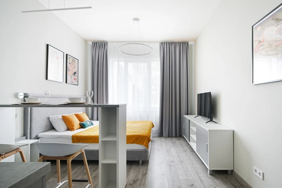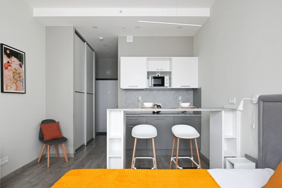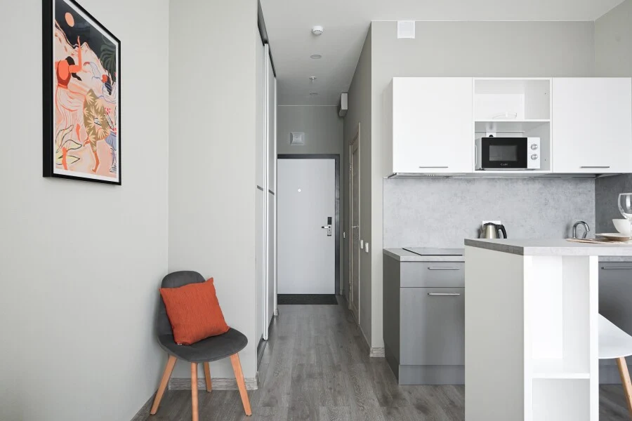 Стильная и современная студия в 2 минутах от метро Купчино! В апарт-отеле "Интуит" сдается абсолютно новая студия. Продуманная до каждой мелочи, с обустроенной кухней и очень просторным совмещенным санузлом. Эргономичное зонирование, удобная кровать, вместительный встроенный шкаф. качественная мебель и техника, подобранная с заботой) Расположение очень удобное. В шаговой доступности: - Пятерочка, Перекресток, Окей, Лента; - ТРК Балкания Nоvа и ТК Балканский - Кафе и рестораны Транспортная доступность (на машина/такси): - Выезд на КАД в 5 минутах; - Аэропорт Пулково в 15 минутах; - Экспофорум в 20 минутах; - до центра 25 минут на метро. Воспользуйтесь шансом сделать своё пребывание незабываемым, благодаря следующим услугам: - Комфортное проживание в уютных и современных номерах, оснащенных необходимой техникой. - Собственная кухня в каждом номере для самостоятельного приготовления пищи. - Бесплатный высокоскоростной Wi-Fi для связи и развлечений. - Каждому гостю гарантирована чистота в соответствии с европейскими стандартами уборки, свежее постельное белье и полотенца по количеству гостей без дополнительной оплаты. Мы упростили процесс заселения и сделали его бесконтактным - вы сможете заехать в любое удобное для вас время без предварительного согласования. Выбирая нас, вы выбираете комфорт и удобство каждую минуту пребывания! - При заселении требуется паспорт. Также будет необходимо подписать договор краткосрочного найма. - Заезд с 14:00. Выезд до 11:00